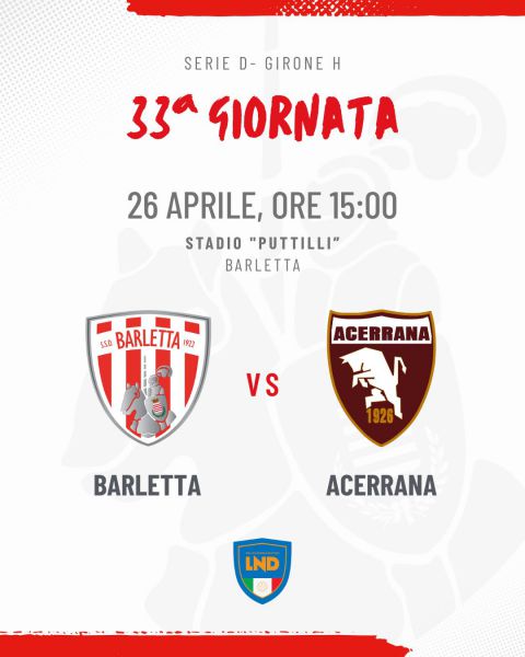 Domenica 26 aprile ore 15:00, Stadio “Puttilli"- Barletta